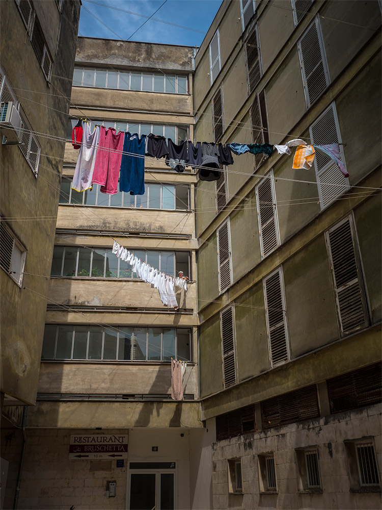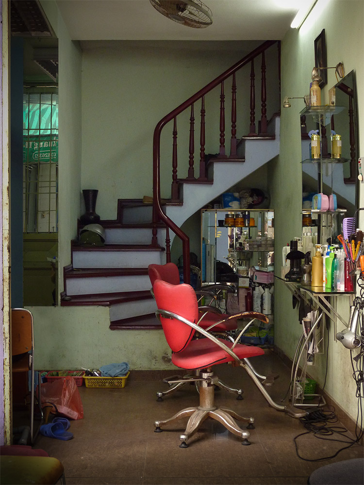 La ville est le lieu de multiples scènes, mêlant passants et architecture. Ici, ce sont les bâtiments seuls qui ont attiré mon attention. Les devantures de magasins, les façades rythmées des immeubles, les entrées de maisons, proprettes, selon les critères du pays, où parfois un pot de peinture oublié nargue les canettes fraiches savamment alignées dans un réfrigérateur rutilant.
