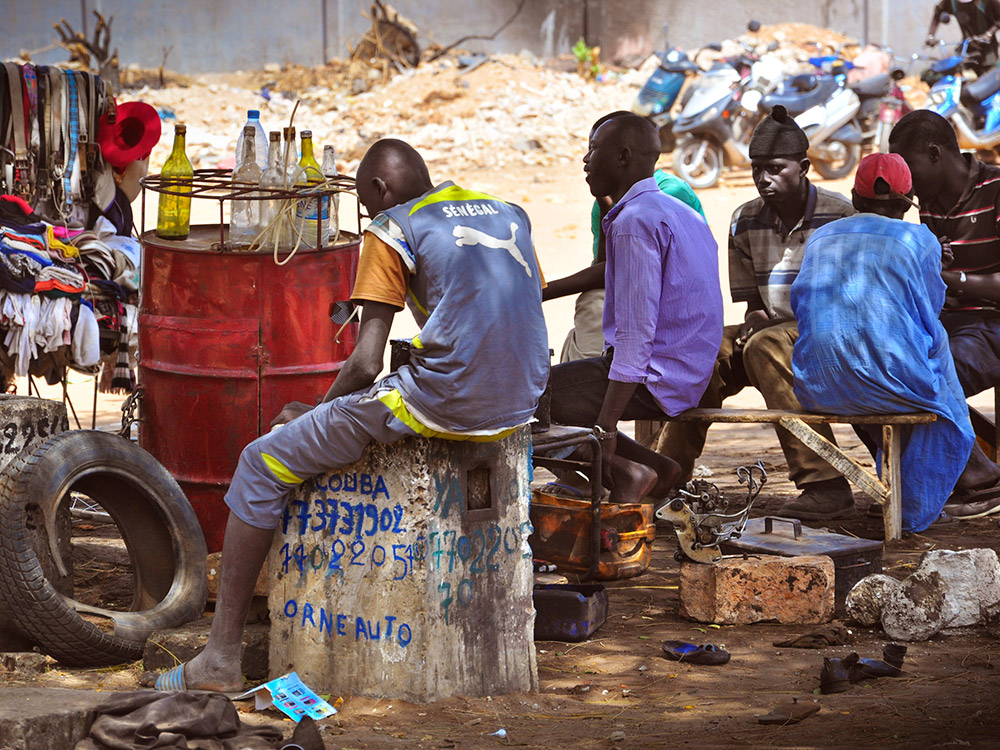 Malgré des conditions de vie difficiles pour beaucoup, ce qui frappe au Sénégal c’est la gentillesse des gens. Les enfants jouent, avec de vrais jeux, courent par bandes pendant que les plus grands travaillent dur, rapportant la pêche durement méritée. Les couleurs vives des murs, les boutiques improvisées à un coin de rue tenues par des vendeuses souriantes, les garages en tout genre, tout se négocie, sauf la liberté.